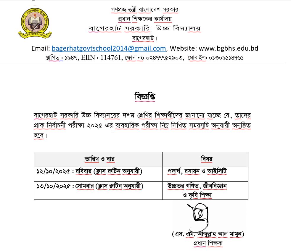 ব্যবহারিক পরীক্ষার বিজ্ঞপ্তি