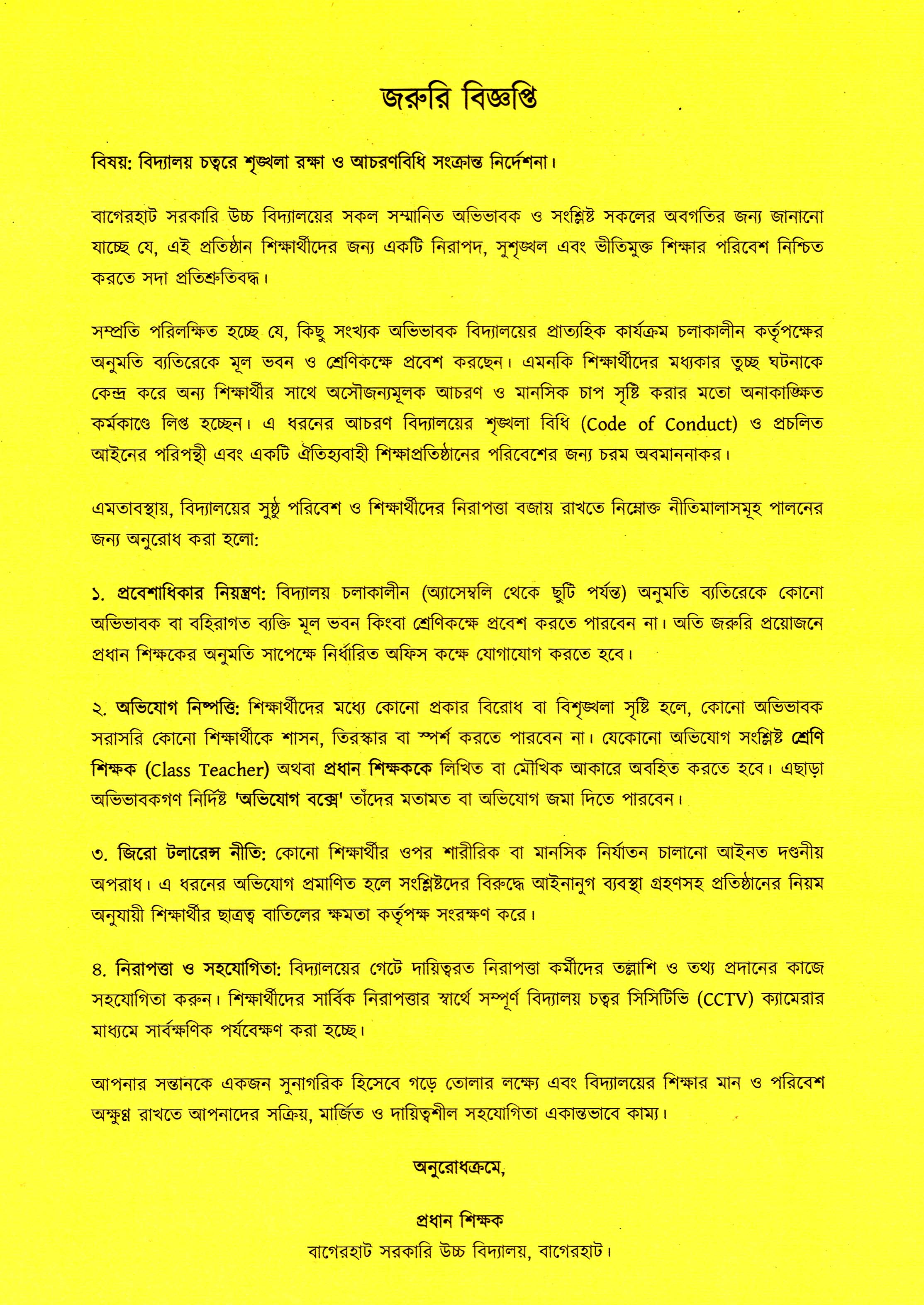 জরুরি বিজ্ঞপ্তি